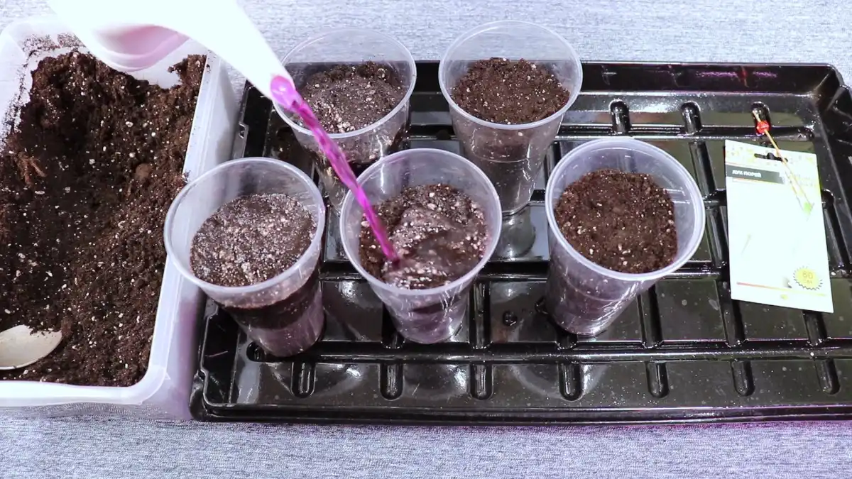 На дно кожної склянки, якщо він не з торфу, бажано укласти дренажний шар завтовшки 1-1,5 см. Ідеально підійде перліт.