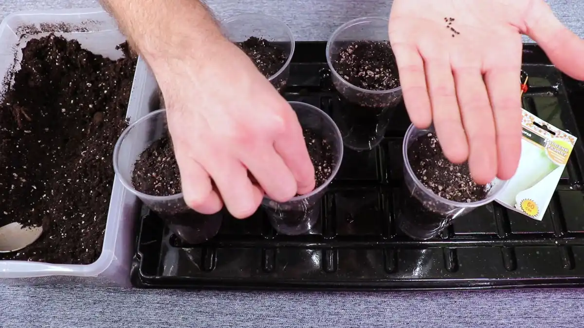 Розклавши і злегка утрамбувавши в склянках грунт, поливши його марганцівкою, розкладаємо насіння по 2-3 насіння в ємність на відстані 2-3 см один від одного. Відстань має бути максимальною, щоб при наступній пересадці на грядку коріння якомога менше травмувалося.