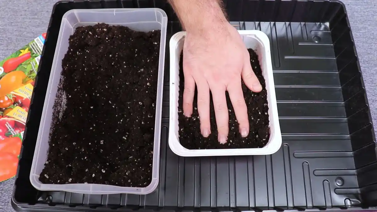 Ґрунт для посіву томатів на даному етапі підходить універсально-розсадний із нейтральною реакцією. Додатково можна внести різні почвоулучшители, але це необов'язкова умова, оскільки пізніше ми пікіруватимемо і розсаджувати томати по окремих ємностях і тоді заправимо грунт по максимуму.