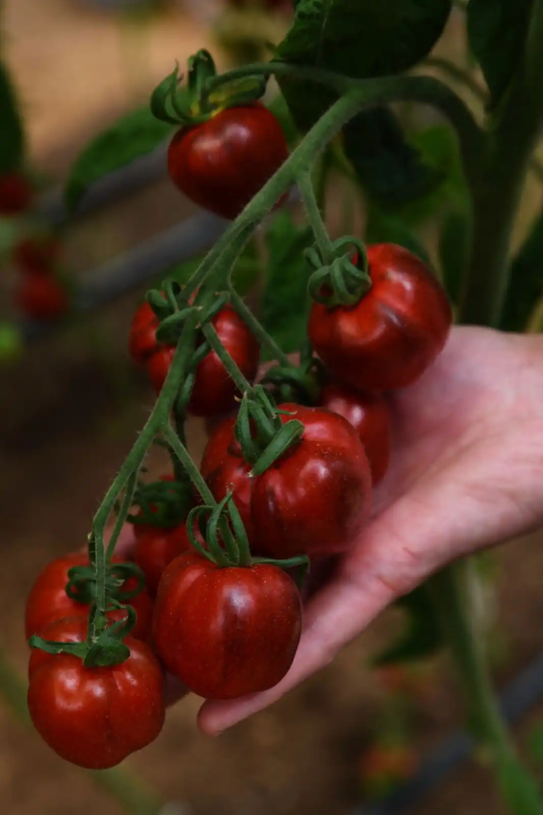 Великою кількістю лікопіну та антоціанів відрізняється і кистьовий гібрид.Чорничний блюз F1». Він індетермінантний, середньостиглий, підходить для вирощування у захищеному ґрунті. Період від сходів на початок дозрівання – 105115 днів. Стійкий до ВТМ та фузаріозного в'янення. Плоди кубоподібні, слаборебристі, щільні, в технічній стиглості зеленувато-фіолетові, в біологічній – червоно-бордові з фіолетовими розлученнями, масою 40-50 г, зібрані у правильні, рівні кисті, не розтріскуються і не обсипаються. Приємного кислувато-солодкого смаку. Для вживання у свіжому вигляді, цільноплідного консервування, ідеальні для фарширування.