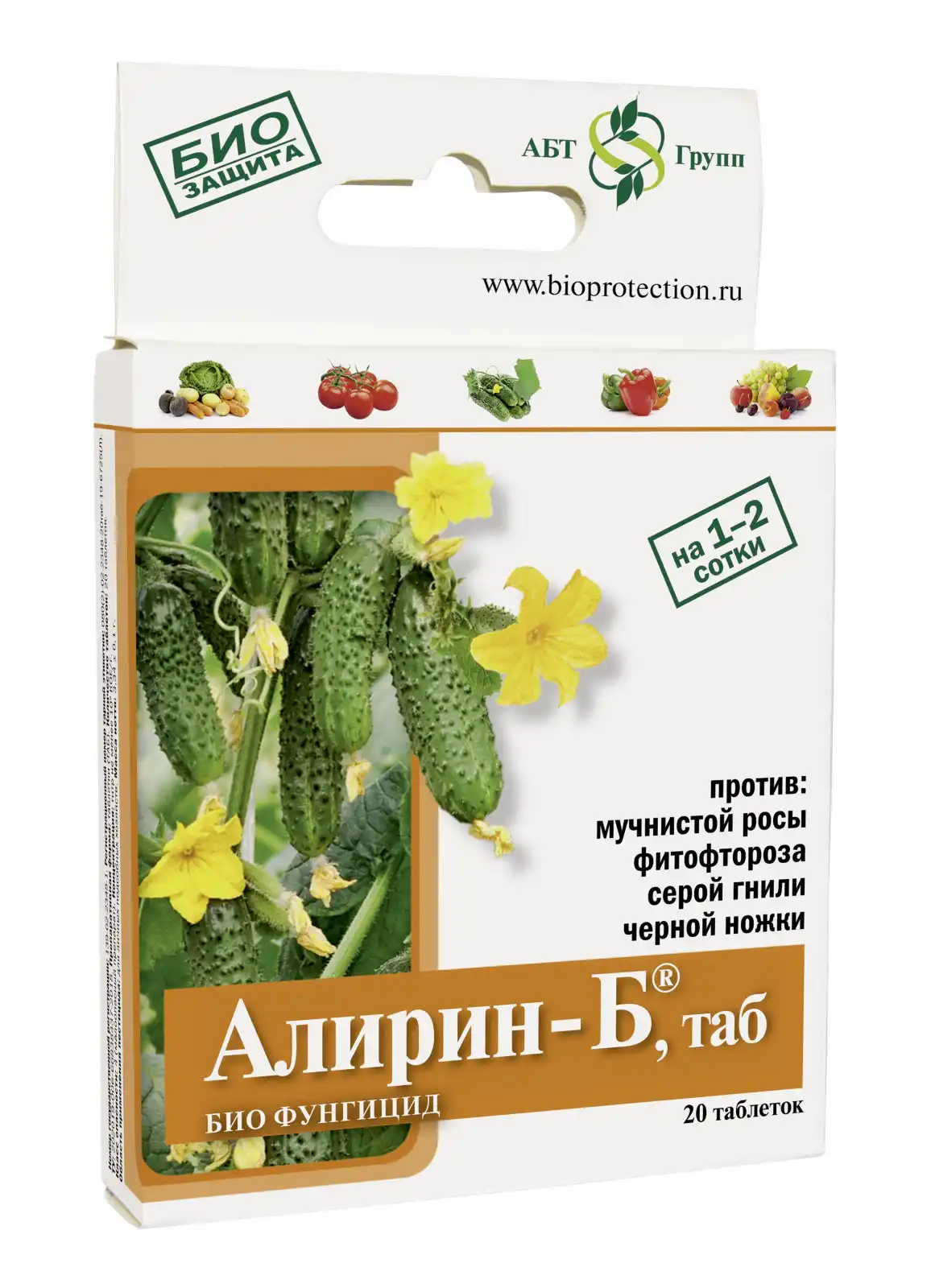 Алірин-Б (таблетки) - біологічний фунгіцид, застосовний для знезараження насіння, протоки під корінь та обробок по листку.