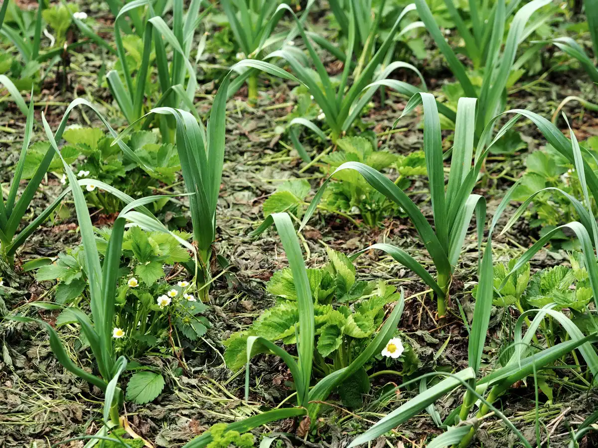 У грядку з полуницею можна підселити інші багаторічні або однорічні рослини, у тому числі пряні трави. Наприклад, відмінним варіантом можуть бути такі трави як м'ята, шавлія, кмин і чебрець, а також квіти, наприклад, огірковик. Хороші сусіди полуниці – багаторічні рослини сімейства цибулинних. Зокрема, перевірена класика - суниця + часник чи цибуля.