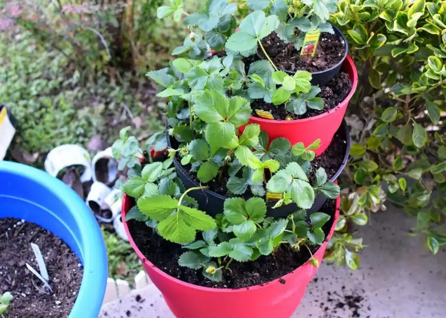 Щоб максимально використати наявний простір, можна подумати про штабелювання контейнерів для полуниці. Для цього найбільший контейнер стане основою, потім зверху міститься трохи менший і ще менший зверху. Таким чином виходить свого роду пірамідка. Полуницю можна садити по краях нижніх та середніх контейнерів та в центрі верхнього.