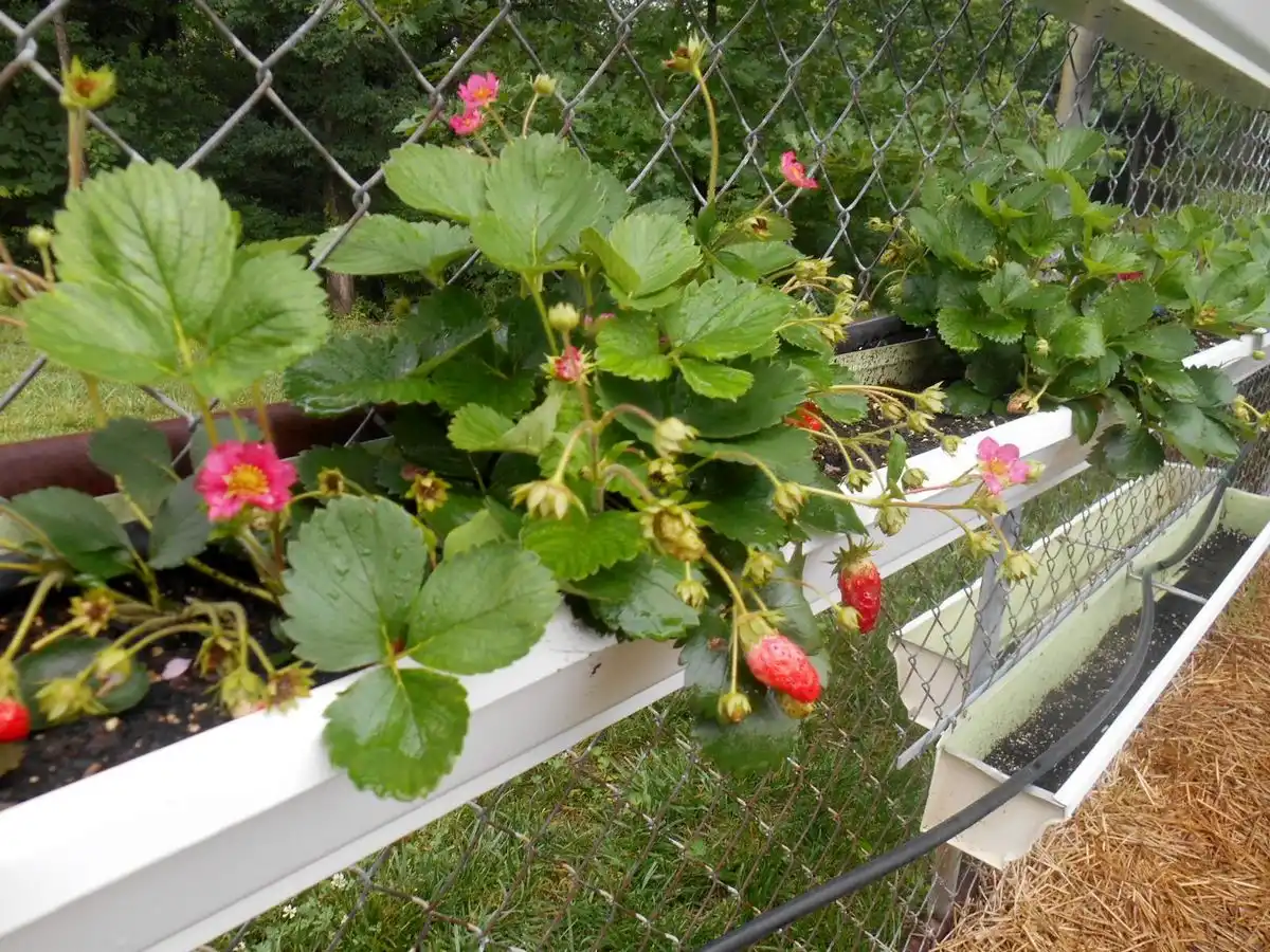 Звичайні ринви теж підійдуть для вирощування суниці, оскільки у неї неглибока коренева система. Для створення мальовничого ефекту «живої стіни» встановіть ринви, з просвердленими дренажними отворами, на паркані або стіні сараю. При цьому потрібно переконатися, що ваша стіна або огорожа досить міцна, щоб витримати додаткову вагу жолобів із землею.