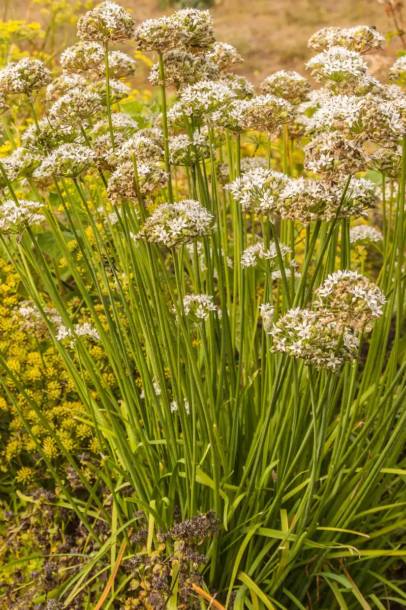 - запашна цибуля (Allium ramosum) — цікавий вид з ланцетним, дуже ніжним, негострим, злегка часниковим листям, яке збирає з ранньої весни до появи півсфер із зірочок білих квіток у серпні;