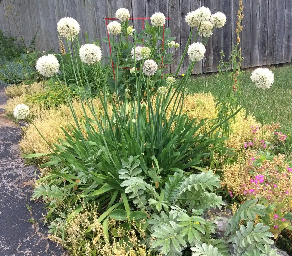 - лук-батун (Allium fistulosum) з трубчастим, невеликим, до 40 см завдовжки, темно-зеленим листям, з кожним роком приносить все більше «врожаю», який можна збирати аж до появи ефектних кульок суцвіть;