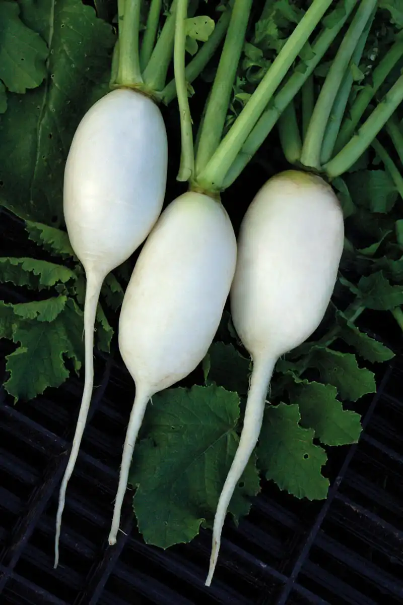 Для осіннього вирощування у відкритому ґрунті ідеально підходять такі сорти, якУспіх» та «Осінній гігант». У сорту "Удача" коренеплоди рожево-червоні, конічно-циліндричної форми, довжиною до 15 см і до 4 см в діаметрі, масою 50-90 г. Сорт Осінній гігант відрізняється дуже великими (масою 70-100 г і більше) овальними коренеплодами білого кольору. Коренеплоди цих сортів зберігаються в холодильнику або підвалі при температурі +2-8 ° С до двох місяців без втрати соковитості та смакових якостей.