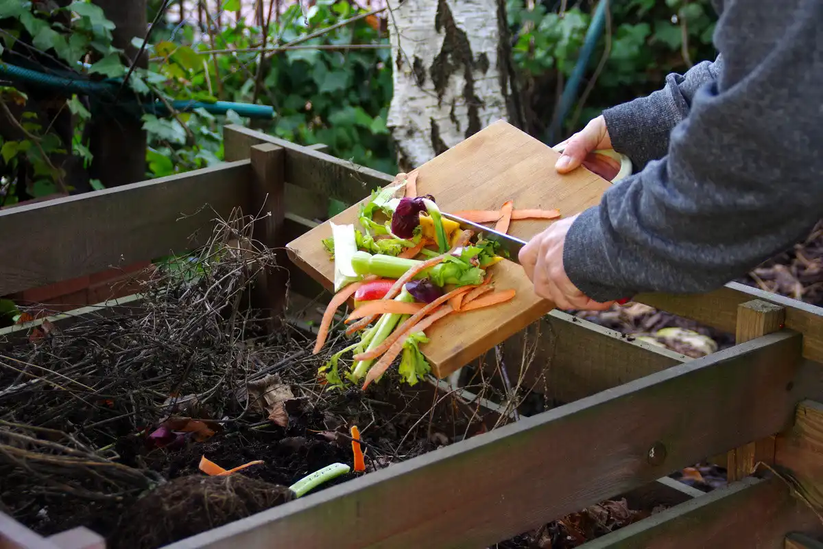 - створіть компостну купу з правильних компонентів, до яких належить достатня кількість повітря, води, зеленої та коричневої маси (зелена маса - це кухонні відходи фруктів і овочів, кавова та чайна гуща, бур'яни та обрізки бадилля, а коричнева - це деревні продукти, такі як тирса, тирса, тирса;