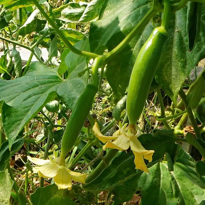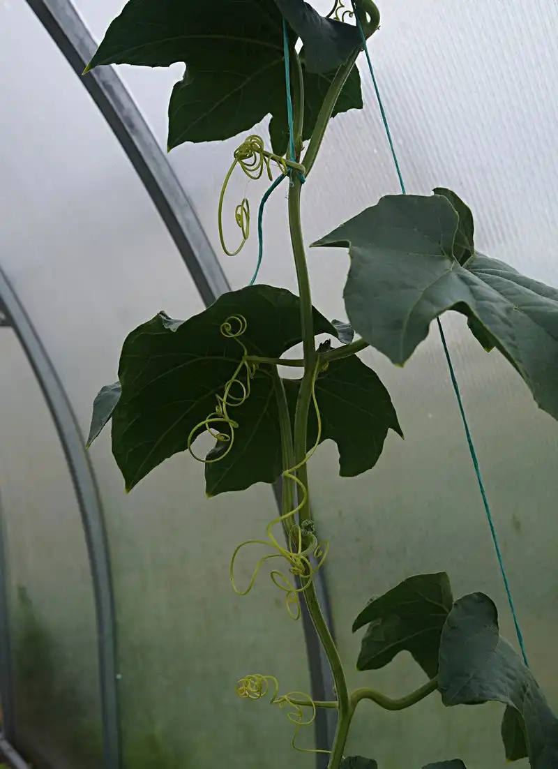 Єдиний екземпляр, що вижив, спочатку розвивався досить повільно. У нього було невелике листя з сріблястим малюнком, який нерідко є на листі гарбузових культур, але в міру зростання листя збільшилося в розмірі і малюнок зник. Сіянець я висадила в теплицю в середині травня через високу теплолюбність культури.