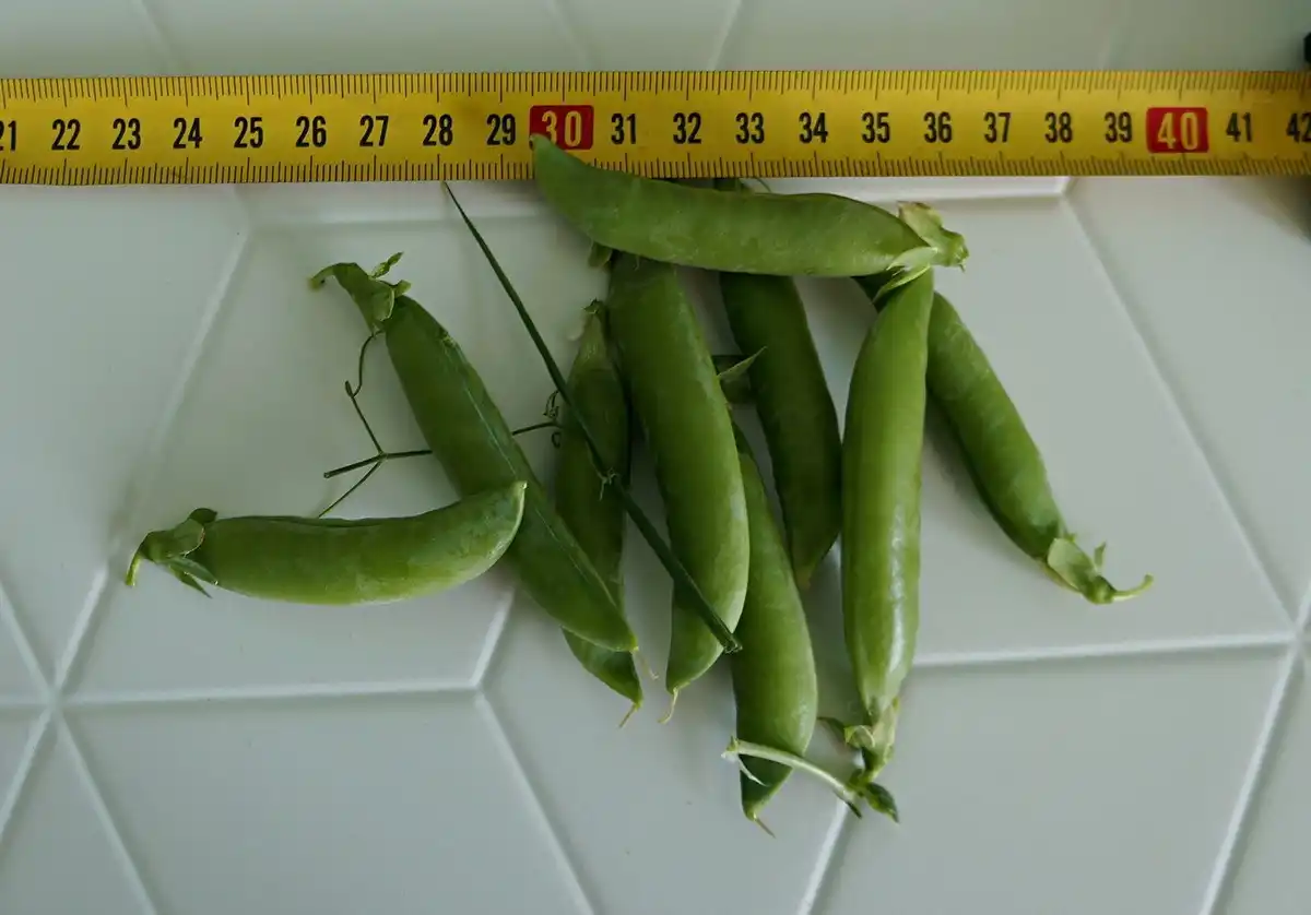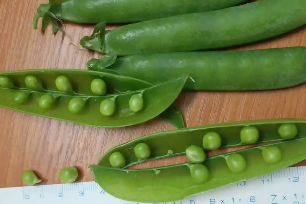 Мій відгук про сорт. Горох лущильний «Дакота» також не зовсім відповідає опису «дуже ранньостиглий». У цього гороху було темне листя, і цим він сильно виділявся на грядці. При цьому після віддачі врожаю листя не захворіло і не пожовтіло, як зазвичай буває у гороху, і я заклала його в грядку як добрива. Горошини близько 1 см у діаметрі, довжина стручка 6-7 см. Смак солодкий.