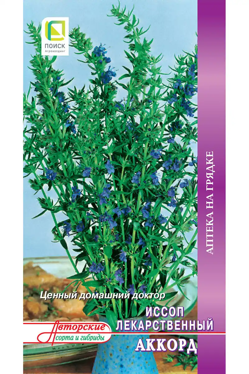 Ісоп лікарськийАкорд» – рослина багаторічна, висотою до 80 см. Посухостійка, зимує добре. Стебло укорочене, розетка листя піднята. Квітка рожева, дрібна. Маса однієї рослини – до 840 г. Має освіжаючий аромат. Квітучі пагони у свіжому та висушеному вигляді додають у страви як приправу. У лікарських цілях заготовляють квітки та верхні трав'янисті частини під час цвітіння, а потім застосовують їх при захворюваннях верхніх дихальних шляхів, шлунково-кишкового тракту, ревматизмі.