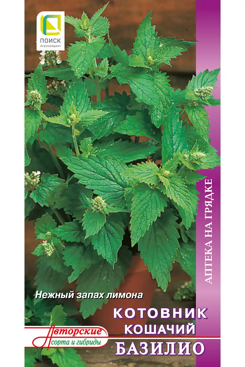 Котівник котячийБазиліо» - Багаторічна рослина. Висота – до 120 см. Стебло чотиригранне, опушене, сильно розгалужене. Лист середнього розміру, трикутно-яйцеподібної форми, зелений з опушенням. Квітки дрібні, білі, зібрані в метельчато-колосоподібні суцвіття. Маса однієї рослини – до 95 г. Має лимонний запах і пряно-гіркий смак. З лікувальною метою використовується наземна частина, що заготовляється у червні-серпні. Настій вживають для поліпшення апетиту, при недокрів'ї, жовчних та шлунково-кишкових кольках, неспокійному сні і т.д. Зовнішньо – у вигляді компресу при фурункулах, наривах.