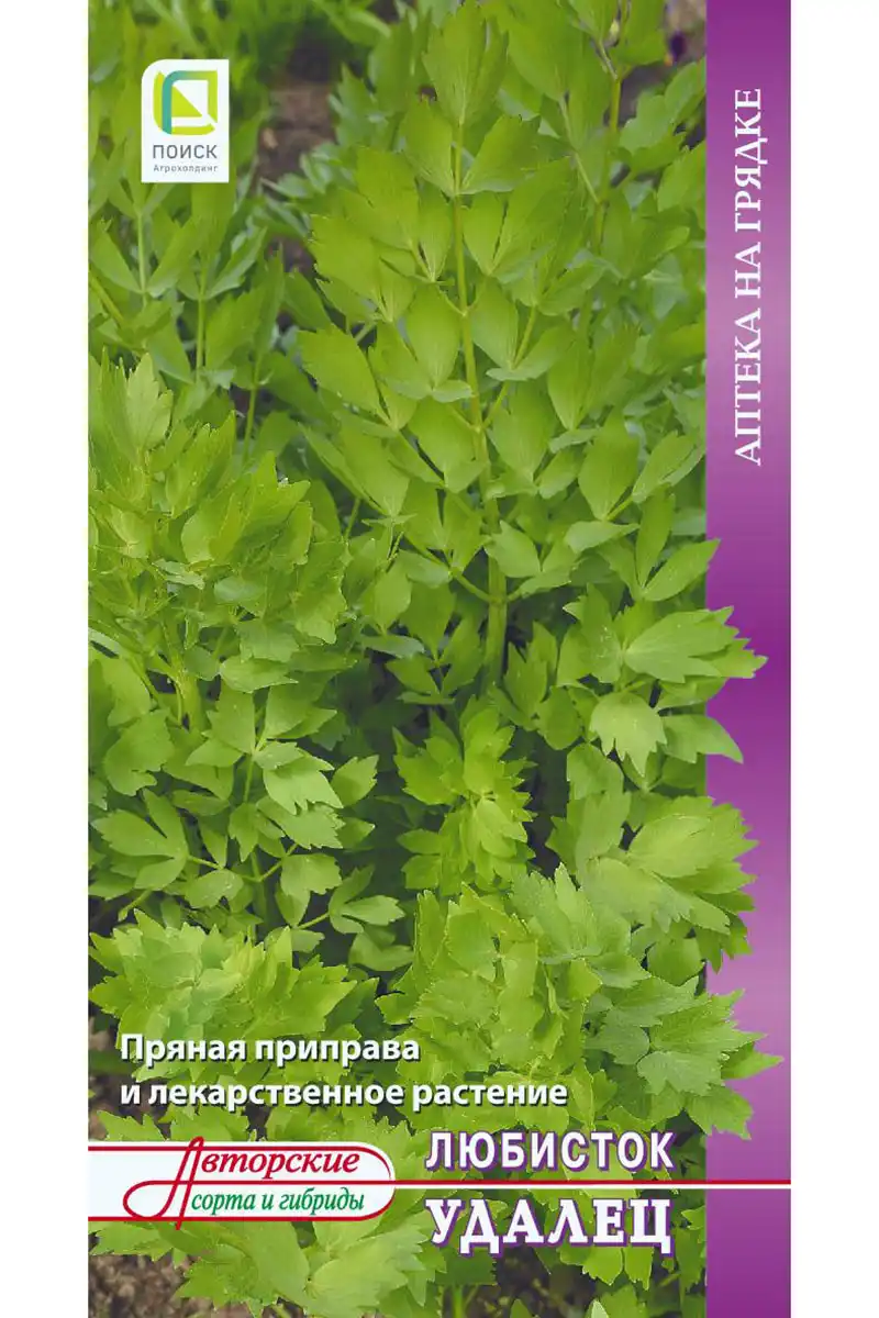Любисток «Удалець»- Невибаглива багаторічна рослина з сильним стійким ароматом. Він компактний, стебло порожнисте, висотою до 1 м. Розетка листя піднята, діаметр – до 75 см, число листя досягає 40 штук. Лист великий, блискучий, жовто-зелений, сильнорозсічений. Квітки дрібні, жовті, зібрані в суцвіття-парасольку. Рослина світлолюбна, дуже холодостійка і морозостійка. На одному місці росте 5-6 років, також можна вирощувати як однорічну культуру. Листя у свіжому та сушеному вигляді в кулінарії використовують як приправу.