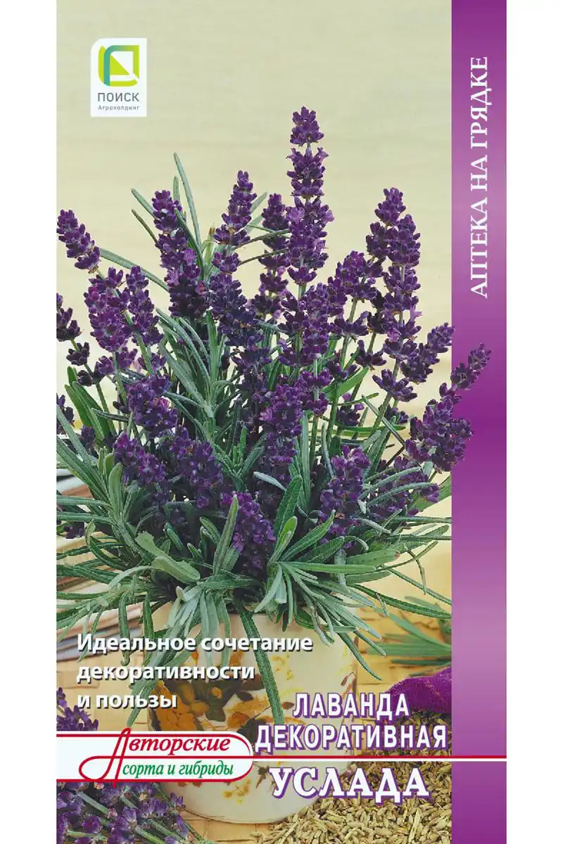 Лаванда «Насолода» - Ідеальне поєднання декоративності та користі. Багаторічна напівчагарникова рослина, дуже компактна, з численними гіллястими пагонами довжиною до 55 см. Лист сірувато-зелений, ланцетоподібний. Квітки синьо-фіолетового забарвлення зібрані в колосоподібні суцвіття довжиною 5-8 см. Аромат сильний, специфічний. Свіжу зелень використовують як приправу.