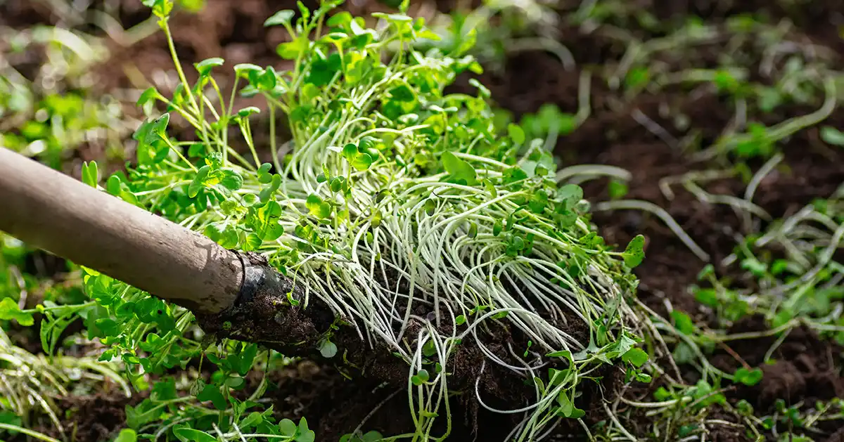 Сидерати, зокрема гірчицю, коли вони досягнуть оптимального стану, можна закопувати. Якщо посадка була проведена провесною, внесення зелених добрив починають за 10-14 днів до посіву основних культур. За цей час вона почне розкладатися та віддасть новим посадкам поживні речовини.