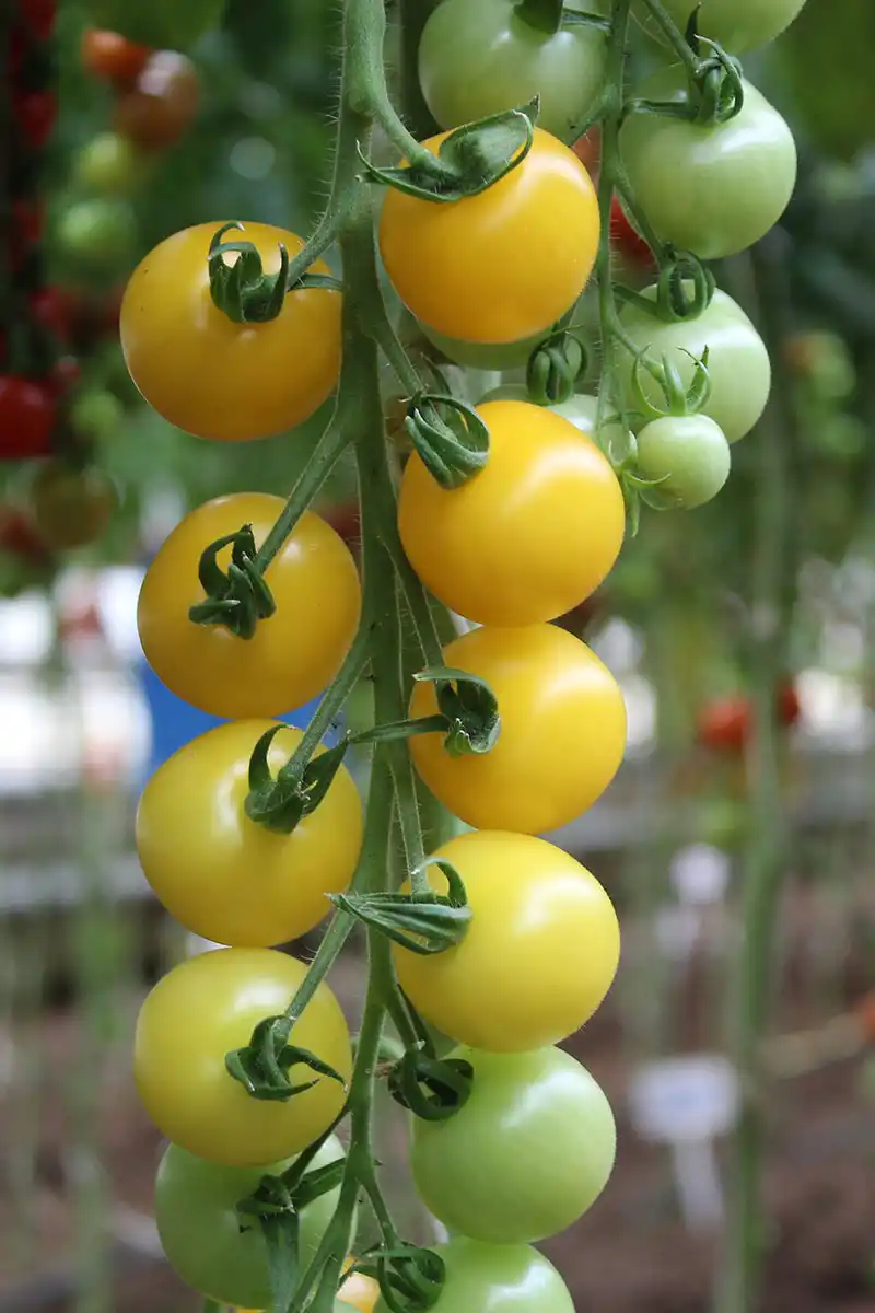 Яскравими смаковими відтінками відрізняються чудові жовті та оранжеві чері-томати: «Помаранчева гірлянда F1» – сяючі яскраво-жовтогарячі дуже солодкі плоди, «Абрикотин F1(жовто-абрикосові плоди близько 30 г), «Чарівна арфа F1» - щільні гарні кисті сонячно-жовтогарячих плодів.