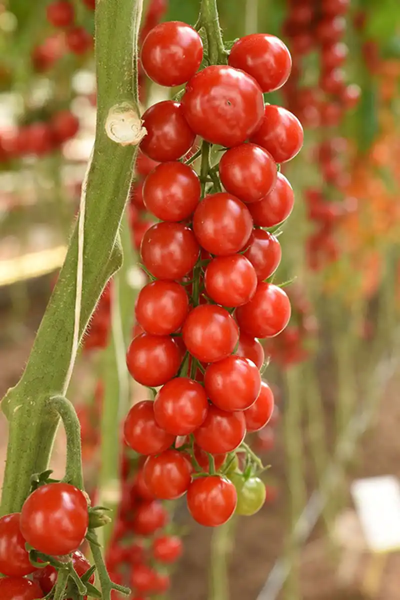 Солодкими, як карамель, плодами вас порадує.Терек F1». Плоди округлої форми, щільні, блискучі, яскраво-червоні, красиві, солодкі, формують прості та складні кисті по 15-30 плодів. Гібрид стійкий до кладоспоріозу, ВТМ. Ідеальний у свіжому вигляді та для цільноплідного консервування.