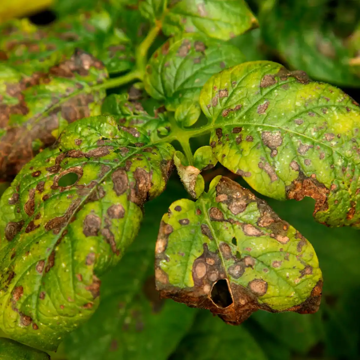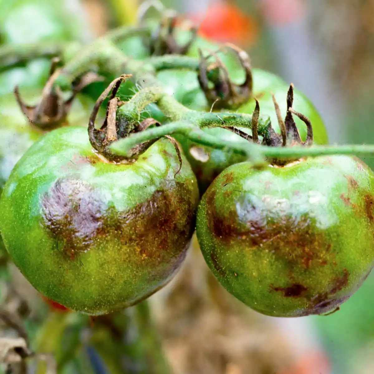 Фітофтороз. Причиною появи цієї хвороби є полив дощовою водою та зараження ґрунту. Томати, картопля, перець і баклажани найбільш схильні до фітофторозу. У боротьбі можуть допомогти «Хом» та «Протон». Коли на рослинах з'явилися напівзрілі плоди, необхідно обробляти «Фітоспорином». Квітникари застосовують «Гліокладін» та «Превікур Енерджі». Для профілактики слід не перезволожити ґрунт при поливі. А також періодично розпушувати ґрунт, щоб забезпечити доступ повітря до коріння.