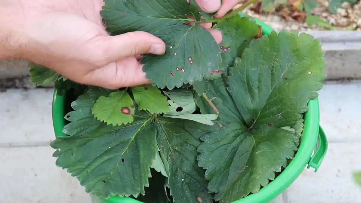 Зрізали листя? Не поспішайте їх одразу ж спалювати. Спочатку огляньте поверхню листових пластин. За їхнім станом можна визначити, чи здорова ваша полуниця чи заражена хворобою. Одна з найпоширеніших хвороб – біла плямистість. Виявити її просто – на листі з'явилися дрібні плями округлої форми. Спочатку їхній відтінок коричнево-червоний. Поступово вони біліють у центрі, облямівка залишається буро-червоною. Це розвивається грибок і у центрі плями утворюються суперечки, з допомогою яких зараження поширюється інші рослини. У міру розвитку захворювання біла цятка в центрі відмирає і на його місці з'являється отвір. Черешки, квітконоси та вуса – практично всі частини рослини можуть бути пошкоджені білою плямистістю.