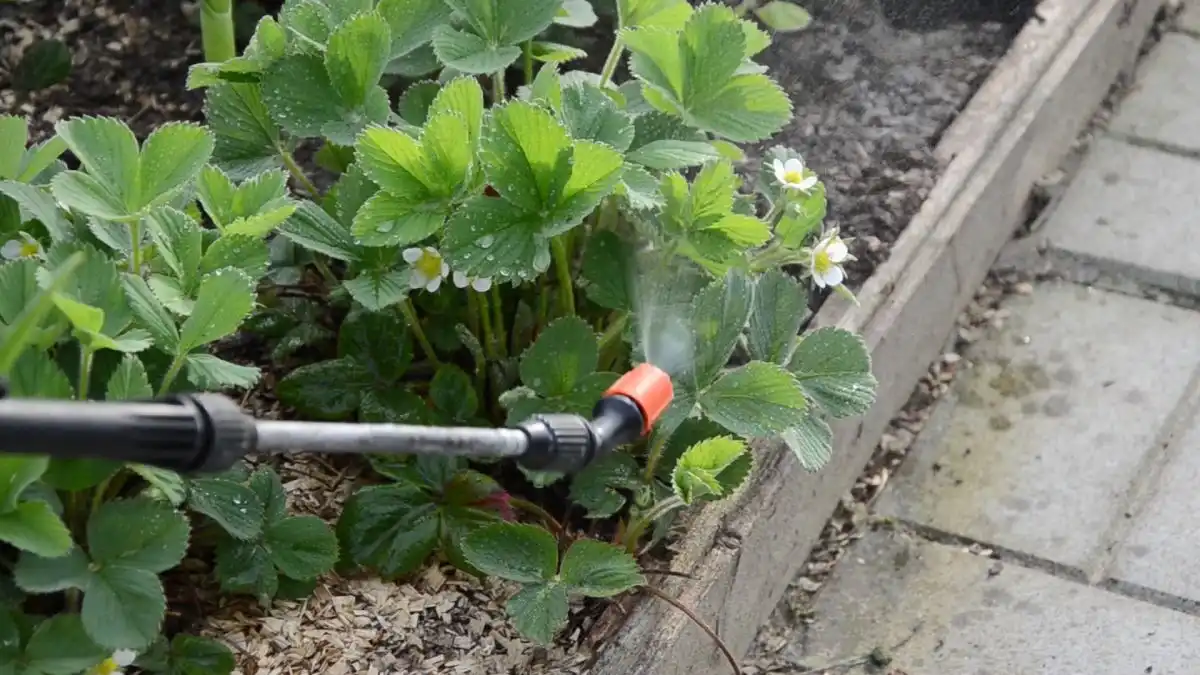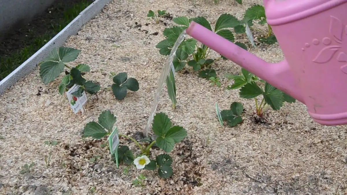 - Рясно полийте полуницю звичайною водою.