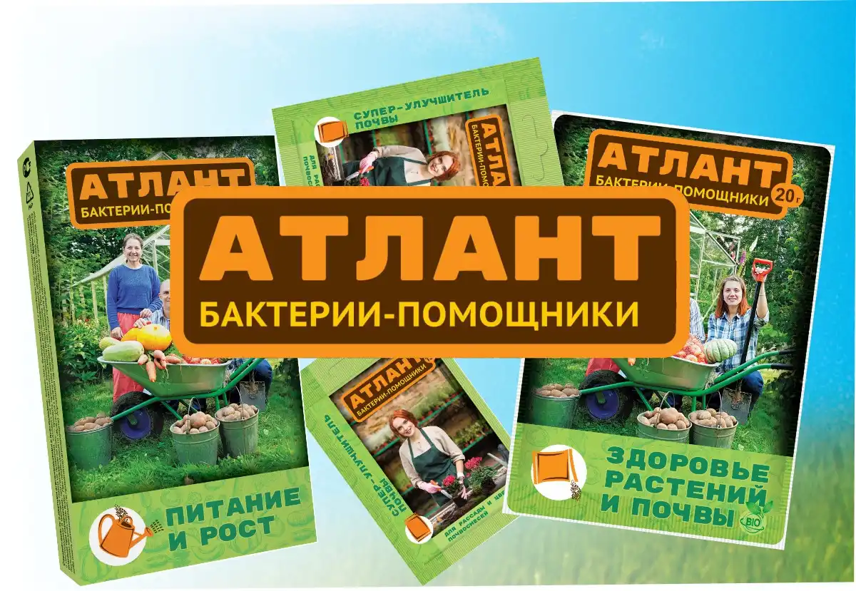 Варто звернути увагу на розроблений компанією «Ваше господарство» універсальний мікробіологічний засіб з назвою «Атлант, що говорить». Бактерії-помічники» (під цією маркою випускаються 3 види препарату). Рекомендується воно для застосування на посадках будь-яких культур: овочевих, плодово-ягідних, зелених, квіткових, декоративних.