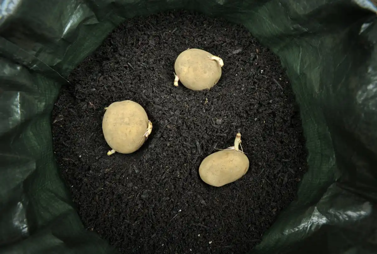 Існує і спосіб посадки картоплі у мішки, а також відра та інші доступні ємності. Його застосовують там, де немає можливості організувати грядки під культуру. Має цей спосіб кілька варіантів: