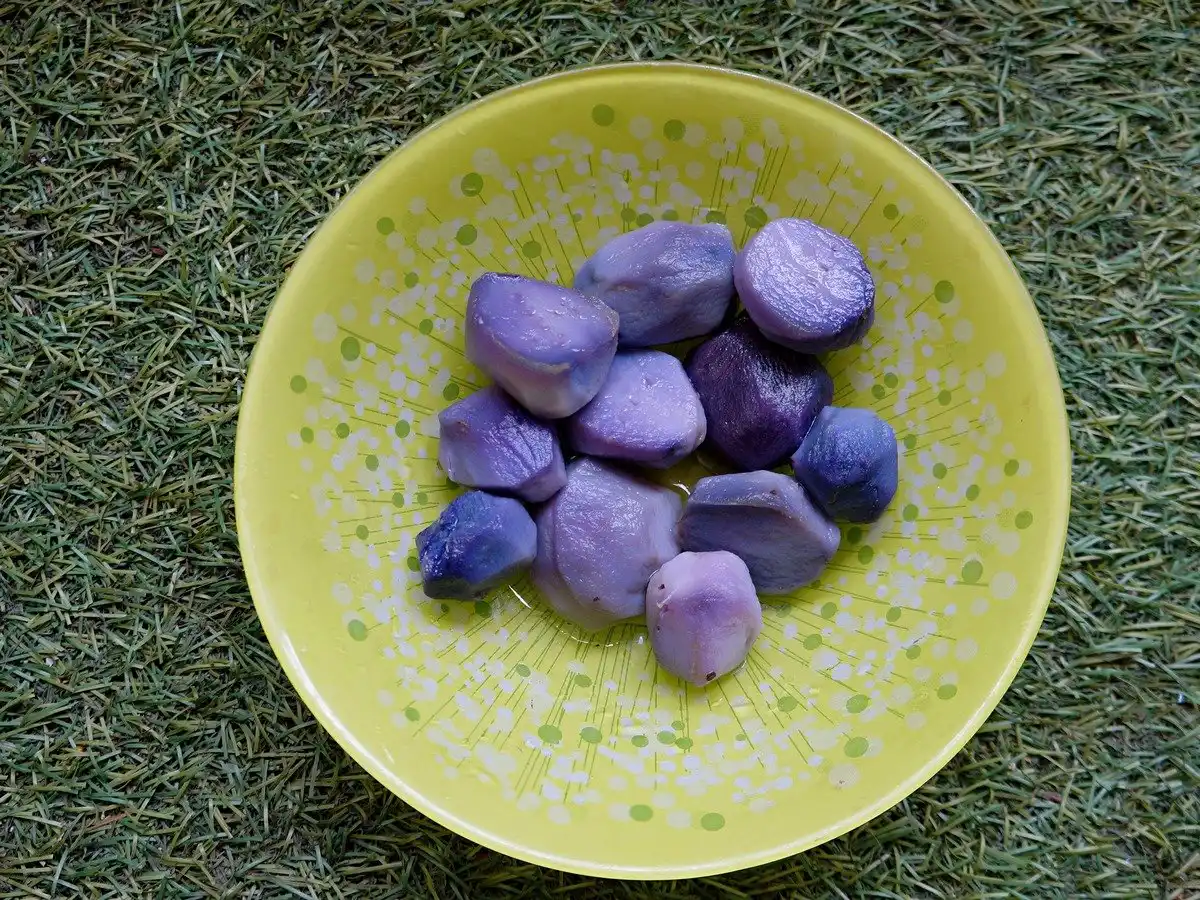 Під час варіння картоплини лише трохи посвітлішали, але фіолетовий відтінок у принципі був збережений і у варених бульб (примітно, що вода в якій варилася картопля, чомусь помітно позеленіла).