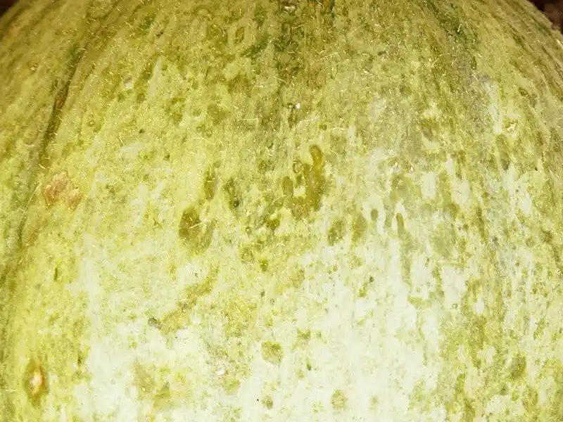 Європейська диня злегка ребриста, із солодкою та дуже ароматною м'якоттю та сіро-зеленою шкіркою, яка сильно відрізняється від шкірки північноамериканської дині, тому що не має характерного сітчастого малюнка, а лише невеликі тріщини.