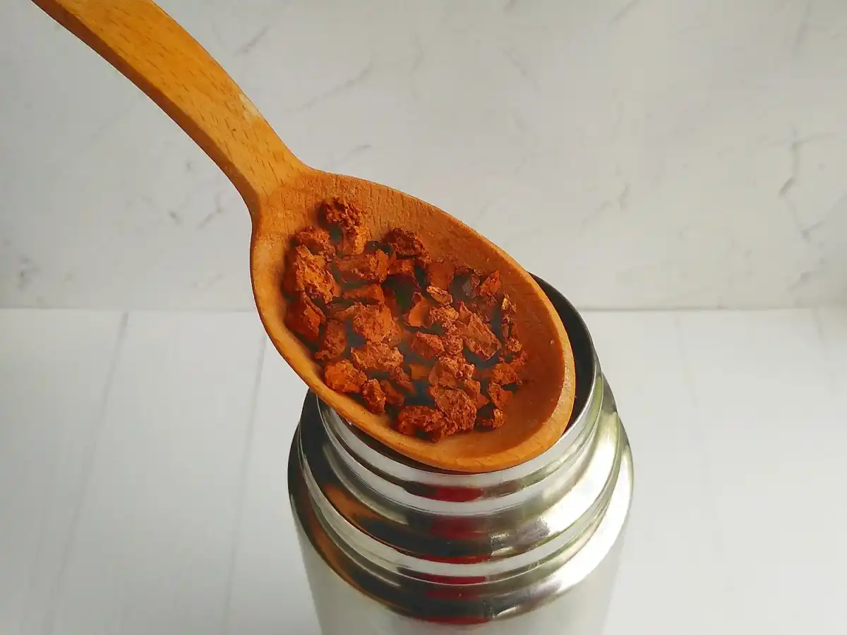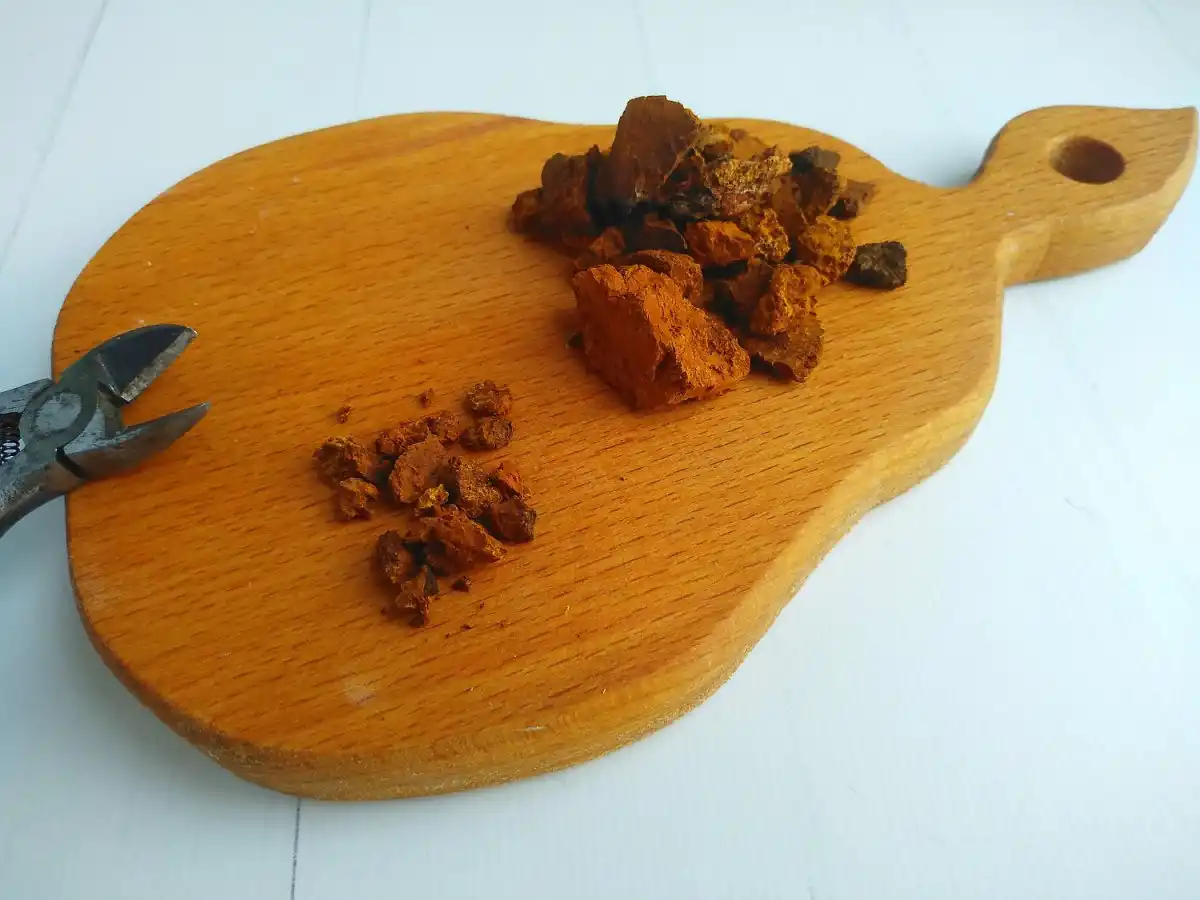 Напій готується з невеликих шматочків чаги розміром з горошину. Для подрібнення найкраще користуватися чистими маленькими щипчиками або гострим ножем.