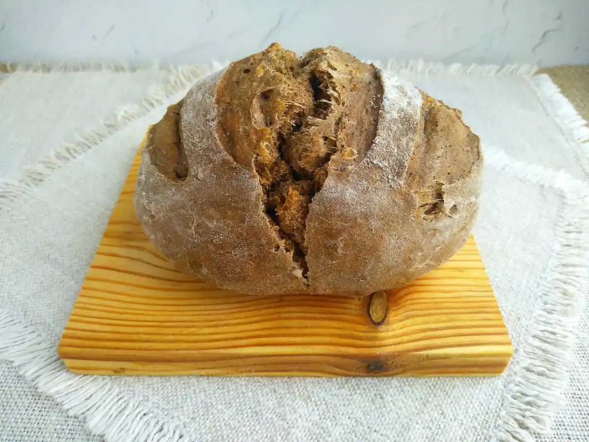 Готовий хліб має неймовірний смак, несхожий на звичайні хлібобулочні вироби, цікаву щільну важку структуру.