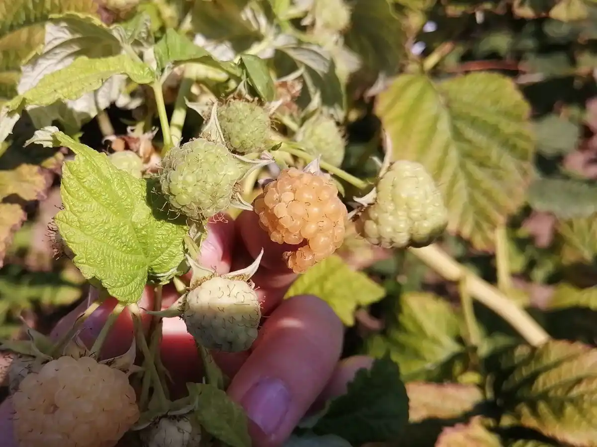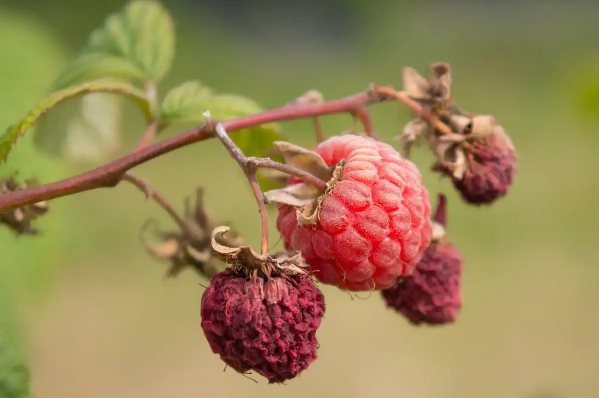 Ще один фізіологічний розлад ягід малини, другою назвою якого є опік ягід. Зустрічається переважно на верхівках пагонів, відкритих для яскравого сонця. Але до причин цього явища відносять не тільки сонячний опік, а й нестача вологи.