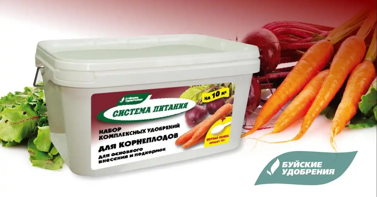 Дорогі читачі! «Система живлення для коренеплодів» від буйських добрив відмінно зарекомендувала себе при вирощуванні коренеплодів з ранньої весни до пізньої осені. Чотири види добрив, що входять до її складу, вистачить для отримання якісного врожаю коренеплодів з 10 м². Дозвольте собі без особливих зусиль виростити смачні та корисні овочі!