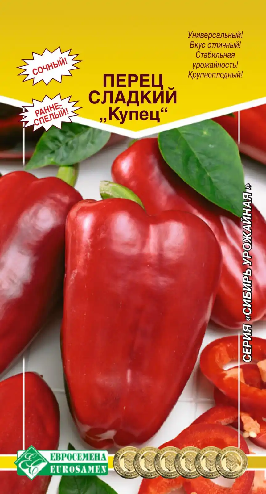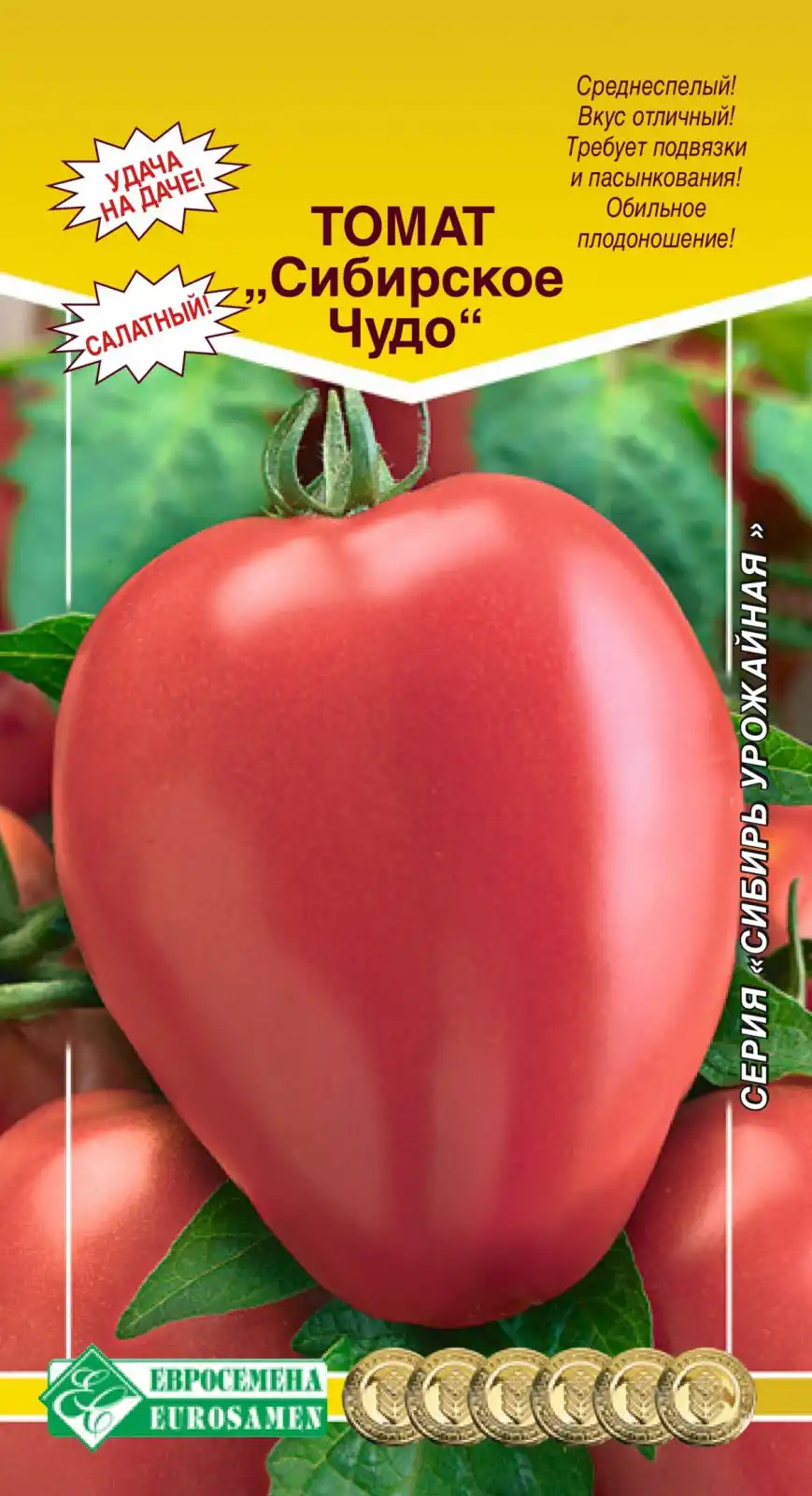 Пропонуємо вам познайомитися з найкращими сортами томатів та солодкого перцю серії «Сибір урожайний», які порадують вас чудовим урожаєм навіть у холодних регіонах. Насіння найкращих, перевірених сортів з високим відсотком схожості ви зможете відрізнити за яскравими барвистими пакетиками з логотипом «Євросемена» (м. Барнаул), серія «Сибір урожайний». Купуйте якісне насіння та хороших вам урожаїв!