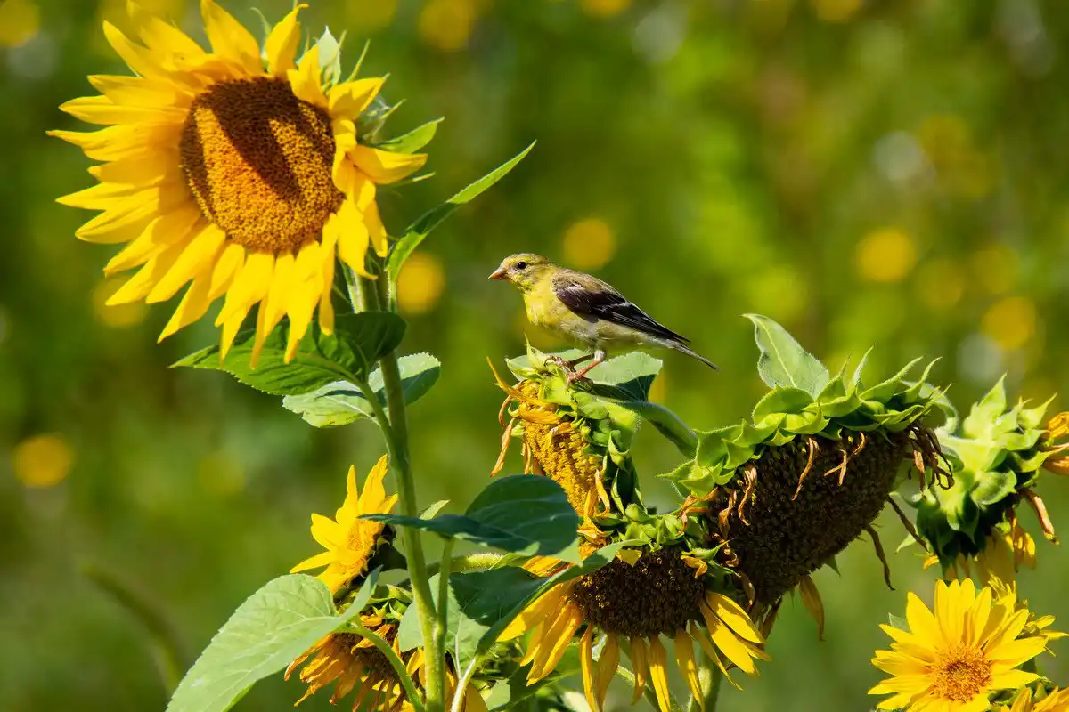 Птахи - це головні шкідники при вирощуванні соняшнику, вони можуть залишити вас без урожаю. Тому доводиться ставити всілякі «відлякувачі». Наприклад, старі CD-диски можна прив'язати до палиць, розвісити на високих палицях довгі яскраві стрічки з тканини, а часом і самій доводиться відганяти птахів від соняшникових посадок. Я якось проїжджала машиною повз один будинок, там панчохи жіночі на головки соняшників натягували, щоб птахи не клювали.