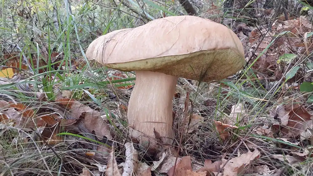 Боровик красивоніжковий, Знову ж таки, при погляді зверху легко сплутати з білим грибом. І на дотик теж, оскільки капелюшок щільний з трубчастим нижнім шаром, ніжка товста. Я зустрічала такі боровики з дуже світлою рожевою ніжкою. Трубчастий шар світлий, як у білого, але при натисканні синіє, на зламі капелюшок теж синіє. Гриб неїстівний, гіркий, і навіть є відомості про його отруйність. Фотографувати приємно, він є фотогенічним. Цим краще й обмежитись.