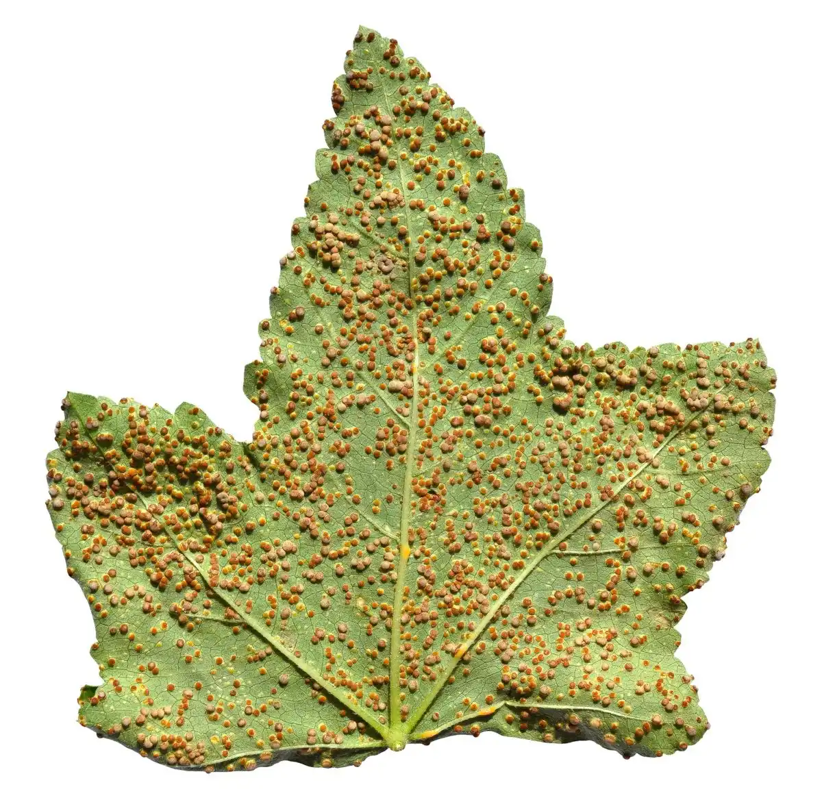 Коричневі плями на верхній стороні листа збільшуються, зливаються і часто покривають весь лист повністю. Пошкоджене листя швидко втрачає вологу, в них порушується обмін речовин і фотосинтез. Рослина зупиняється в рості, припиняється приріст нових пагонів, а засохле листя опадає.