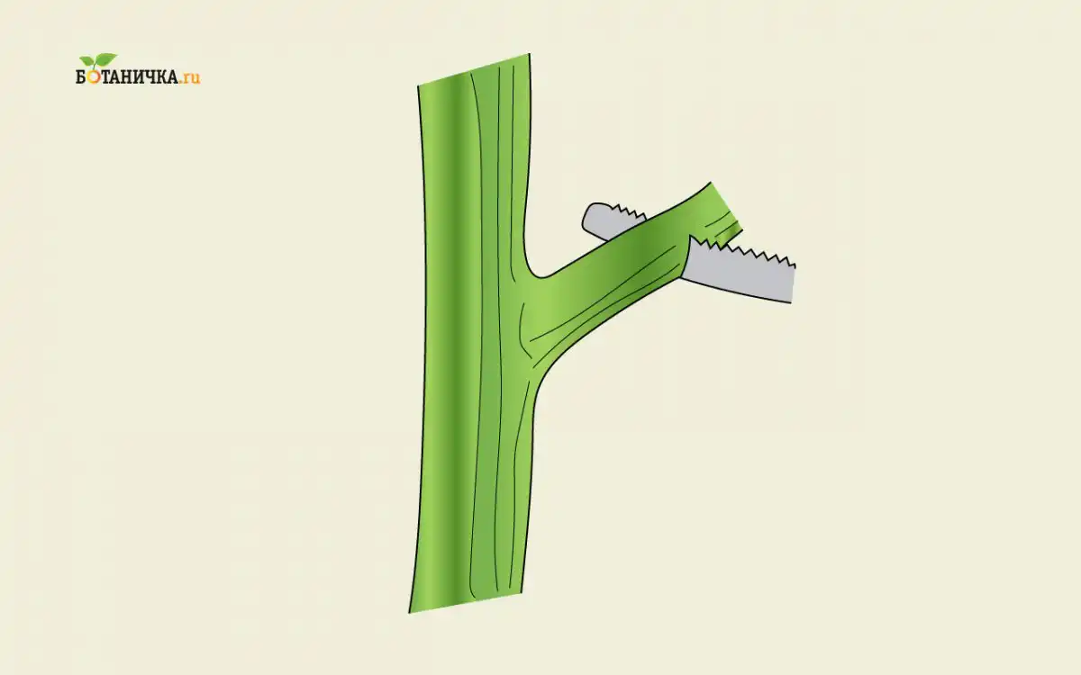 На гілках з гострим кутом відходження, з'являється мало плодів, вони менш витривалі і можуть ламатися під вагою врожаю, ушкоджуючи при цьому ствол. Тому якщо є вибір, їх краще видалити.