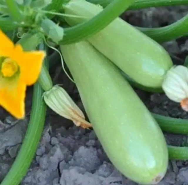 Плоди кабачка світло-зеленого забарвлення, іноді в білу цятку, витягнуті, з щільною м'якоттю, що безумовно впливає на масу плодів (500-800 г) при довжині 18-22 см. Основна позитивна якість - високий урожай, що досягає в оптимальні за погодними умовами.