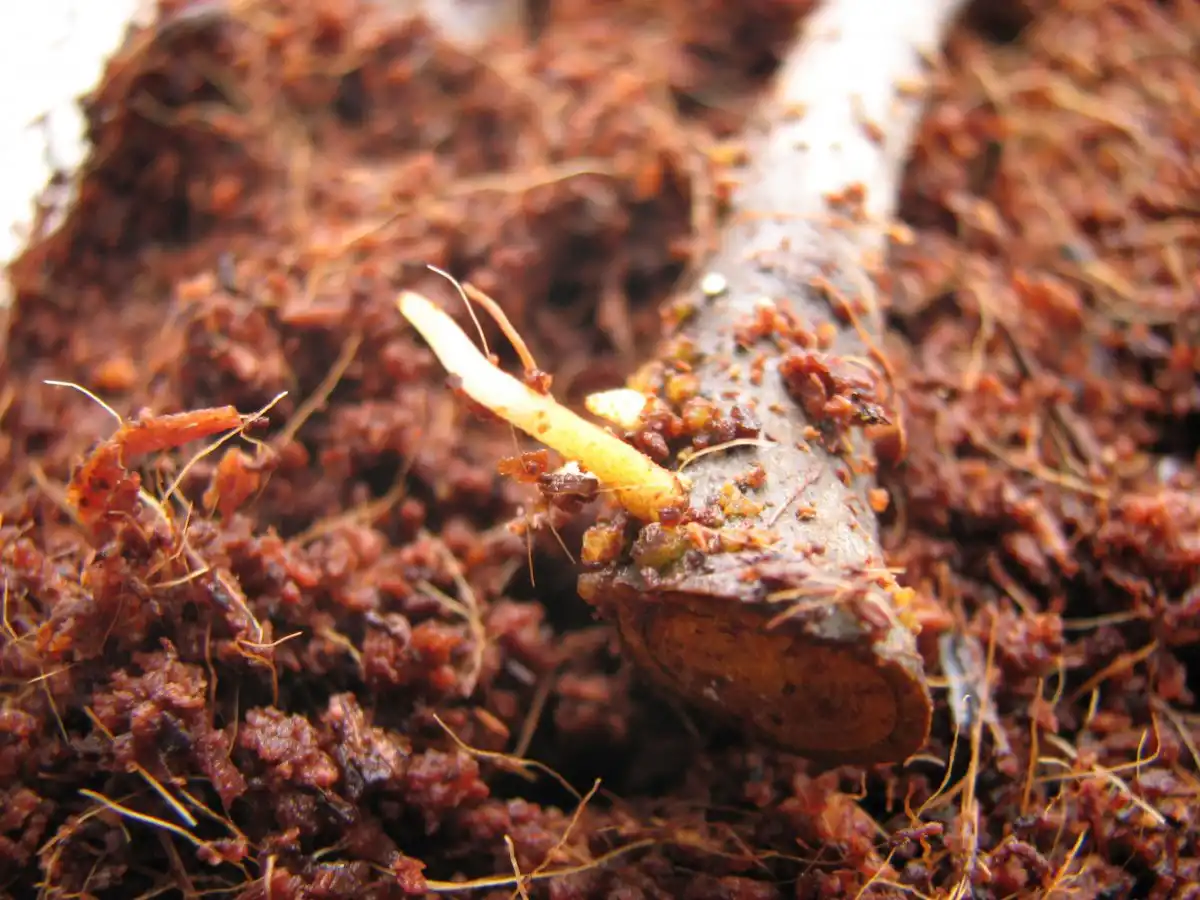 Приблизно через місяць (а може, й раніше) з'являються перші невеликі коріння. Поки вони маленькі, живець слід посадити в контейнер з пухкою та поживною сумішшю. Коріння, що переросло, легко ламаються і рослина знову витрачає час і сили на відрощування нових, так що не затягуйте.