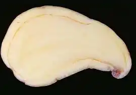 На поверхні бульб з'являються тверді сірі плями, що добре помітні на м'якоті при розрізі картоплини. З розростанням грибниці починається гниття бульби.