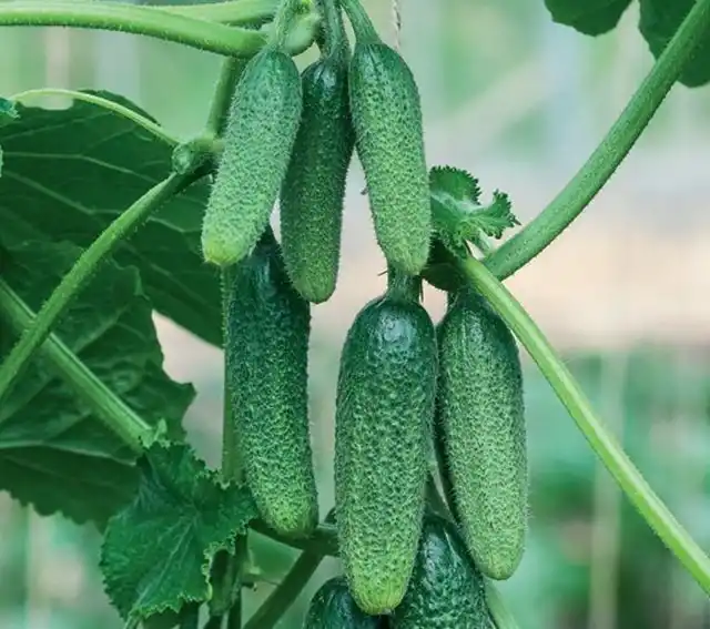 Гібрид ранній, у мене в теплиці почав плодоносити приблизно через 38-40 днів поле посіву. Ідеальний варіант для тих садівників, хто вважає за краще збирати мініатюрні огірочки, так звані, пікулі.