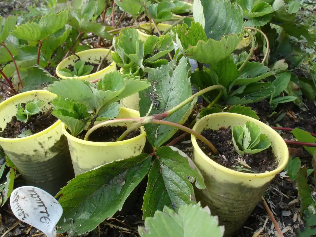 Дорощування вусів полуниці в горщиках