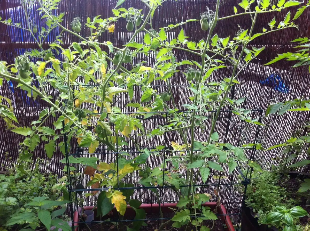 Симптоми нестачі магнію виявляються на томатних кущах під час навантаження їх плодами.