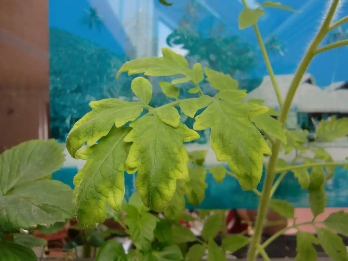 Дефіцит заліза найчастіше зустрічається на вапняних ґрунтах у томатів на молодій розсаді.