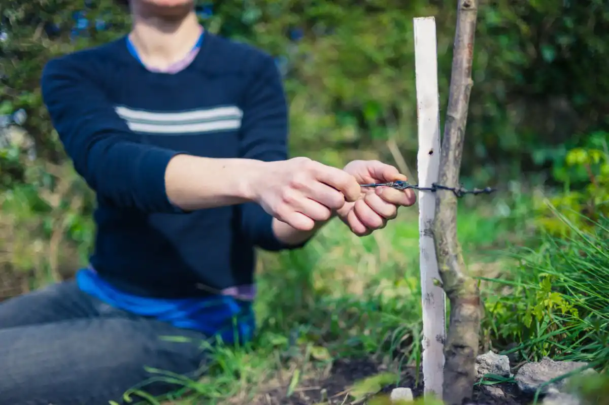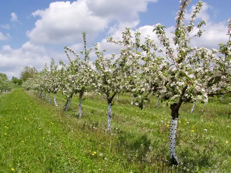 При посадці навесні необхідно захистити молодий стволик дерева від сонячного опіку, побіливши його.