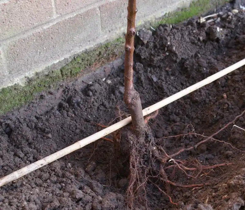 Починати посадку бажано з установки опорного кілочка, його потрібно ставити виключно з північного боку. Опорний кілочок необхідний підтримки дерева у вертикальному стані спочатку, поки саджанець не зміцніє. Після встановлення потрібно взяти в руки наше деревце і добре оглянути його стовбур. На стовбурі можна побачити більш темну сторону і світлішу.