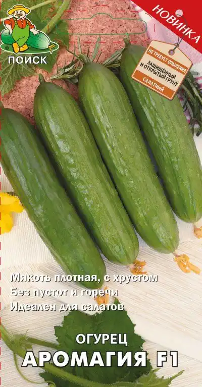 Аромагія F1 - Середньостиглий гладкоплодний партенокарпічний гібрид салатного призначення. Має стійкість до вірусу огіркової мозаїки та оливкової плямистості. Толерантний до борошнистої і хибної борошнистої роси. Плоди мають дуже високі смакові та товарні якості. Використовуються в першу чергу для споживання у свіжому вигляді.