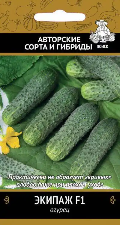 Екіпаж F1 – ранньостиглий партенокарпічний гібрид, що відрізняється стабільним плодоношенням протягом усього вегетаційного періоду. Не вимагає постійного формування, оскільки бічні пагони мають обмежений тип зростання. Стійкий до вірусу огіркової мозаїки та оливкової плямистості. Толерантний до борошнистої і хибної борошнистої роси. Плоди дуже смачні. Використовуються для споживання у свіжому вигляді та консервування.