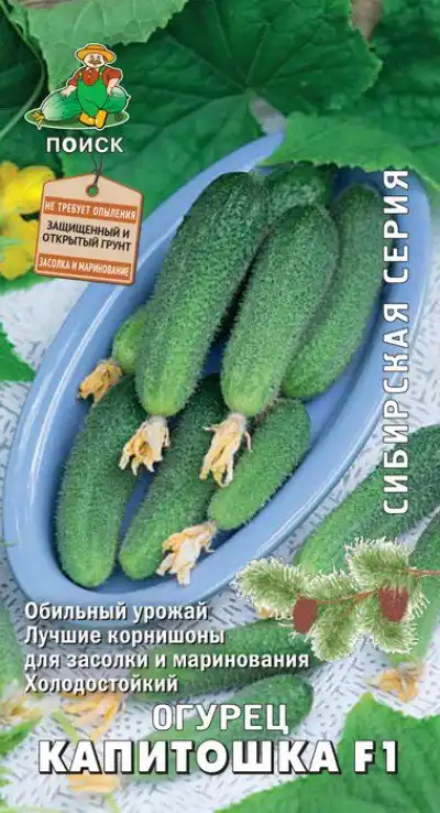 Капітошка F1 – ранньостиглий партенокарпічний гібрид корнішонного типу, гідністю якого є здатність переносити невеликі похолодання, не скидаючи зав'язей. Стійкий до комплексу хвороб. Корнішони неймовірно смачні. Відмінно підходять для соління та маринування.