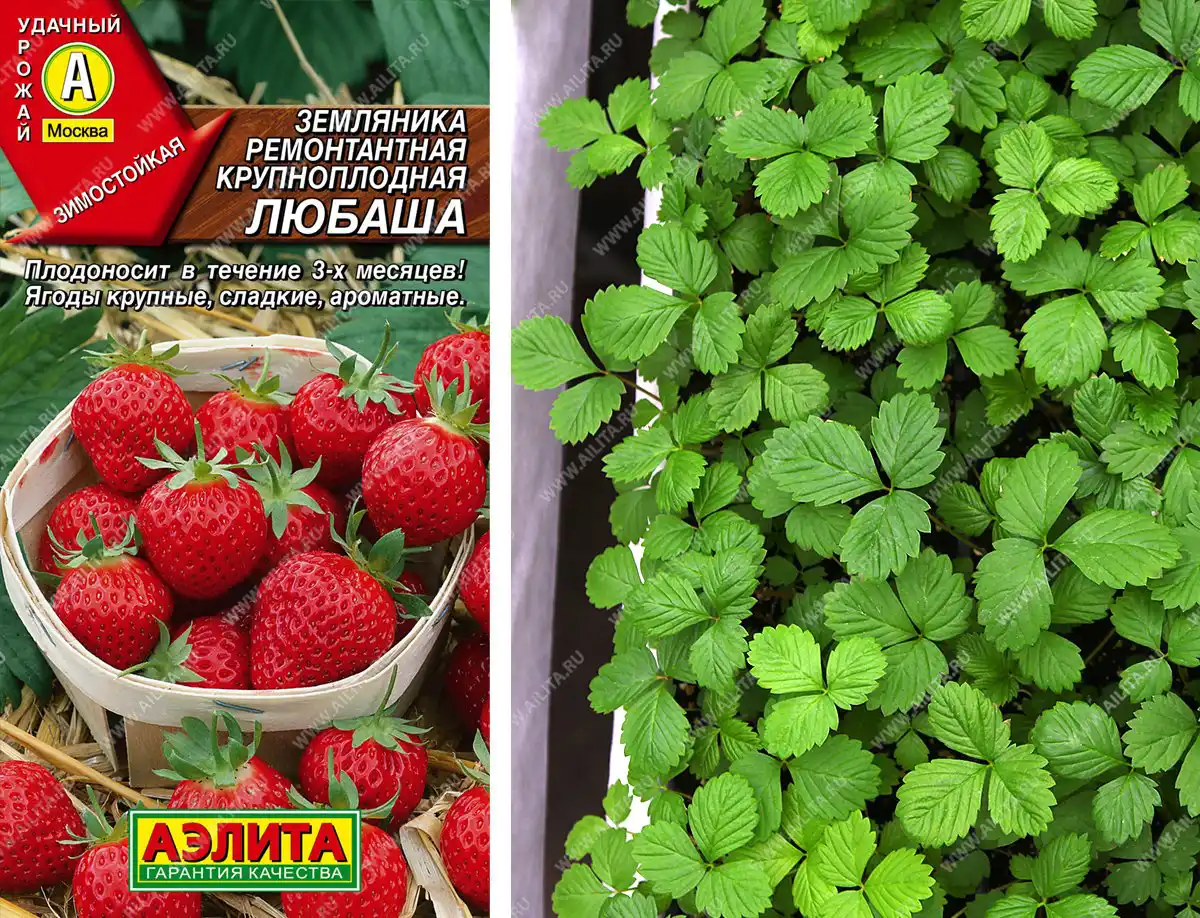 Потужні кущі суниці садового сорту «Любаша» від Агрофірми АЕЛІТА радують своєю напіврозкидною формою, гарною листовою масою та відсутністю вусів. Плодоніжки дуже потужні та міцні. Ягоди цього сорту дуже красиві, вагою до 25 г. Яскраво-червоні, зі світло-жовтими цятками, вони дивують не тільки великим розміром, але й ідеальною конічною формою. Ніжний аромат ягід поєднується зі збалансованим смаком, гармонійність якого заслужила найвищих дегустаційних оцінок. Підвищений вміст вітаміну С і цукру робить цей сорт одним із найуніверсальніших. Ягоди чудово підходять і для консервації, і для заморозки, чудові у десертах.